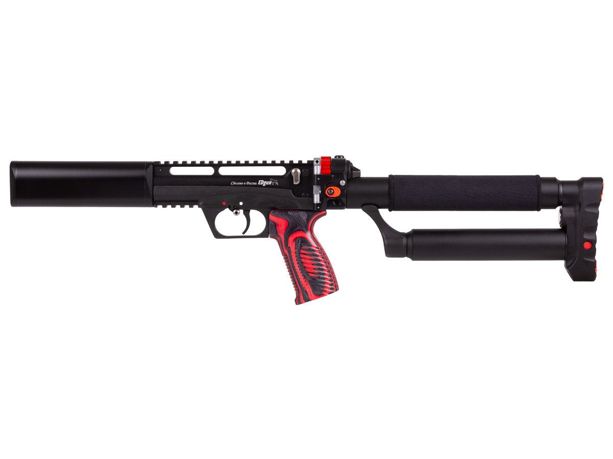 The air gun’s design makes it easy for you to swap barrels for fast caliber and length changes. Whichever caliber and length you pick, the moderator keeps your shooting quiet. Plus, you can add your favorite scope to the Picatinny scope rail, and extras like bipods, lights, and lasers to the Picatinny accessory rail.