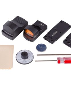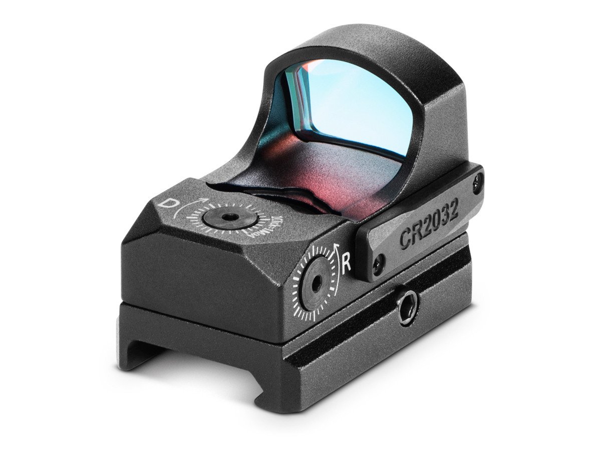 The Hawke Micro Reflex Dot 3 MOA digital red dot sight gives you a compact and light sight that works in different lighting and weather situations because it features 8 levels of brightness and a 25 layer fully multicoated lens. It includes a 3 MOA dot and you can adjust it for elevation and windage using 1 MOA clicks.