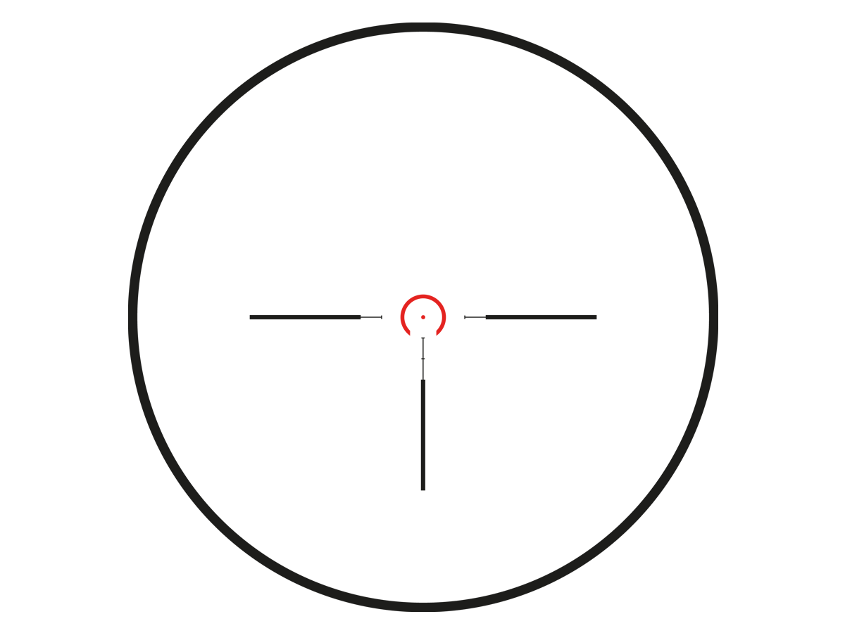 The Hawke Vantage IR 1-4×20 has an SFP (second focal plane) Turkey Dot reticle with etched glass that makes it easy for you to find and aim at your target, with floating posts on the bottom and sides, plus a center dot surrounded by a horseshoe. You can use five different levels of red or green LED illumination to light up the horseshoe and center dot.