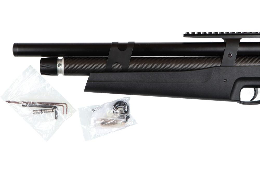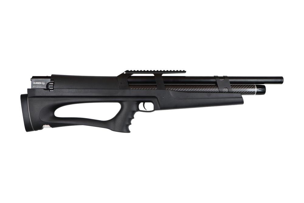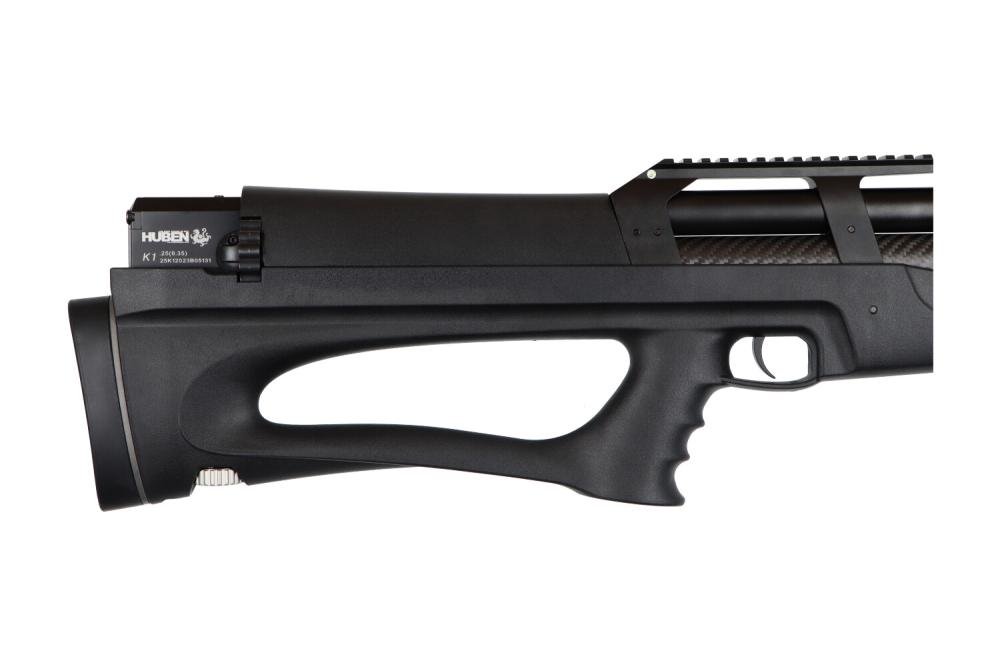 17 shots magazine with the caliber 6,35mm and 19 shots magazine with the 5,5mm, that is awesome! This is one of the most accurate PCP bullpup airguns on the market, one of the reasons for that is that it’s hammerless. Plus: Externally adjustable regulator and adjustable power knob. Shoots slugs and pellets. The Huben K1 is extremely powerfull! Compared to the earlier models this one has an improved regulator, much better accuracy with slugs, an improved internal silencing system and better looks.