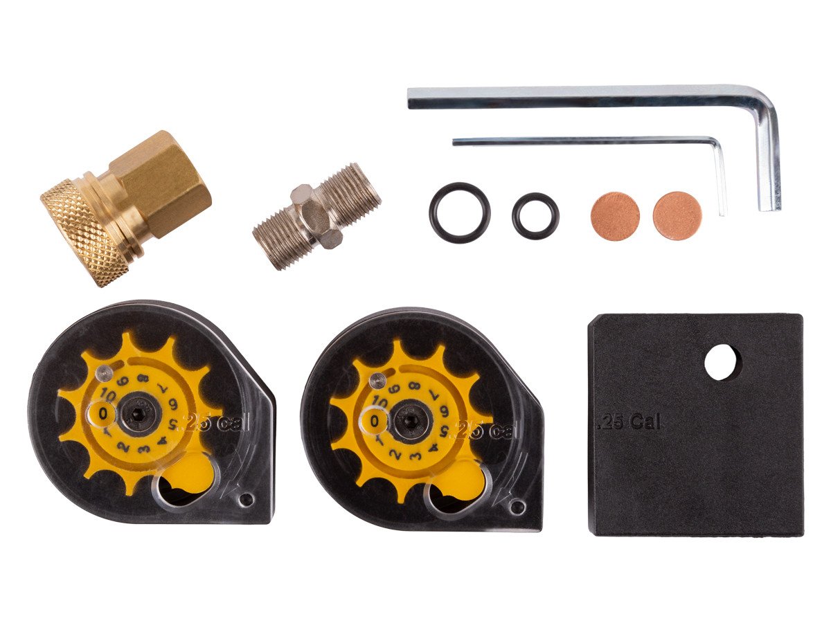 - Includes female Foster quick-disconnect fill adapter, two magazines, and hard case
