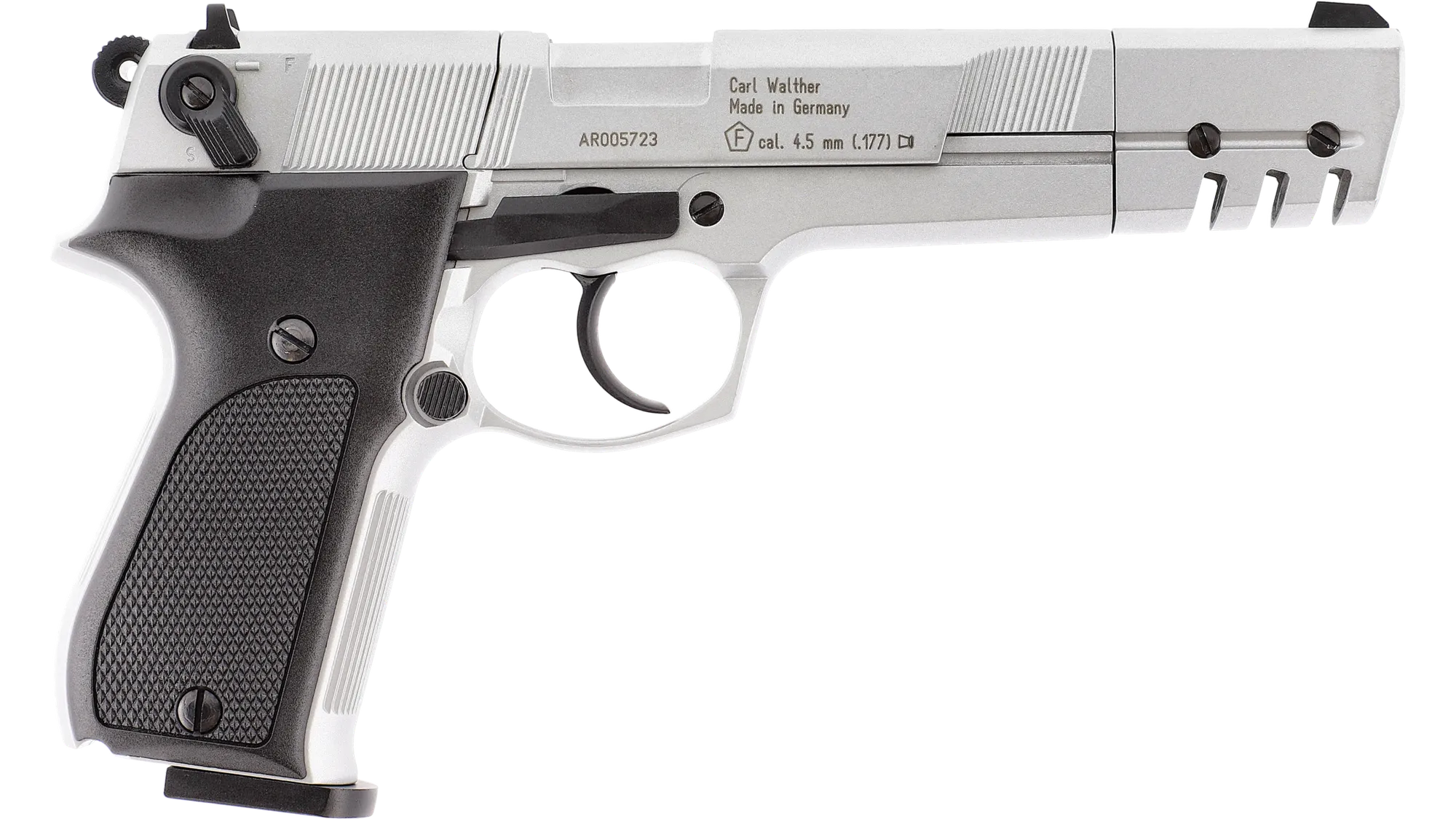 The classic Walther CP88 Competition Nickel model.