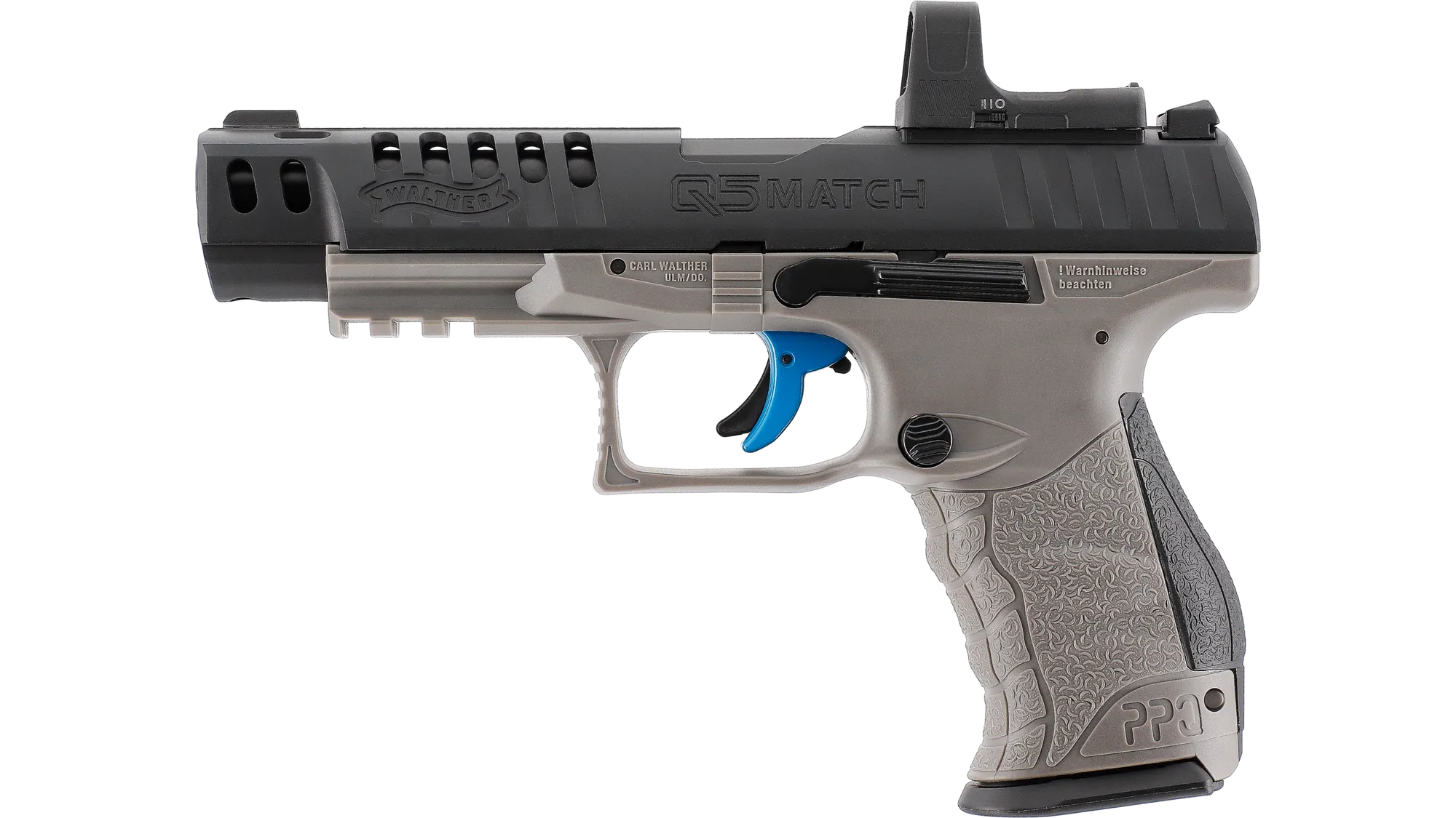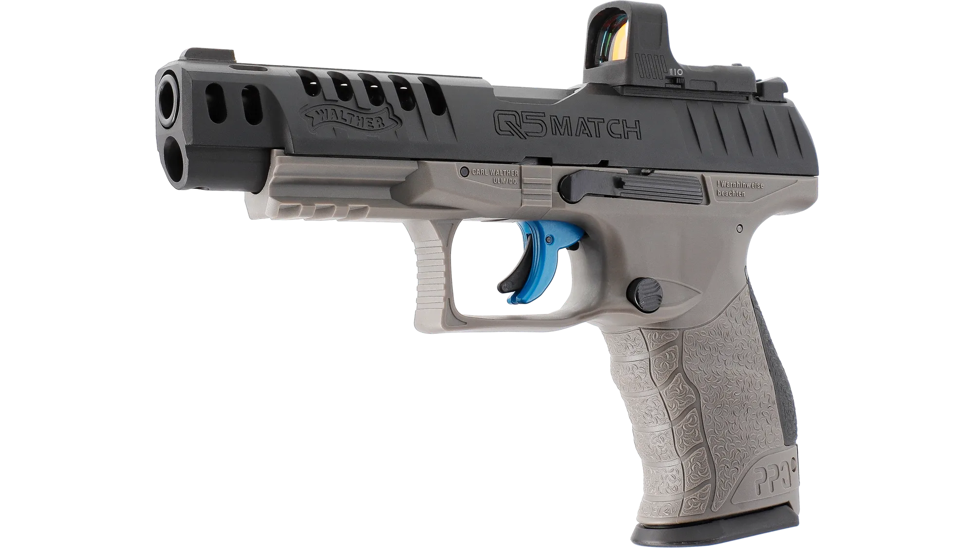 Walther Q5 Match: The modern, competition-focused design with a fiber-optic front sight.